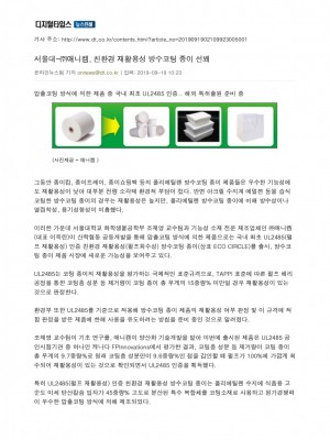 [디지털타임스] 서울대-㈜애니켐, 친환경 재활용성 방수코팅 종이 선봬