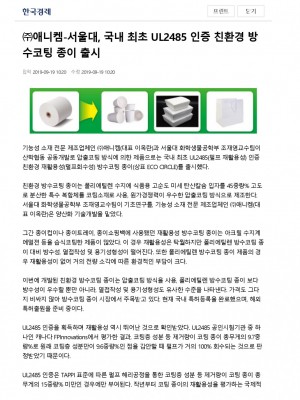 [한국경제] 애니켐-서울대, 국내 최초 UL2485 인증 친환경 방수코팅 종이 출시